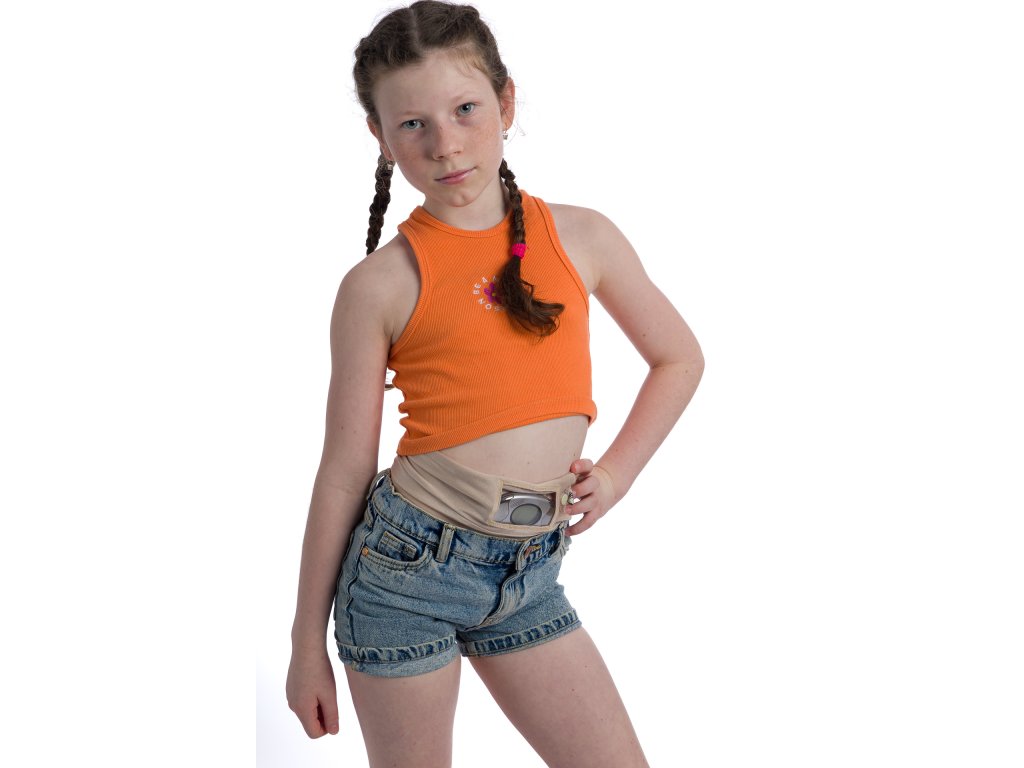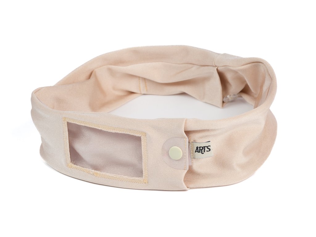 Dia pás z pružnej látky, príjemnej na dotyk, farba telová (béžová), s okienkom.