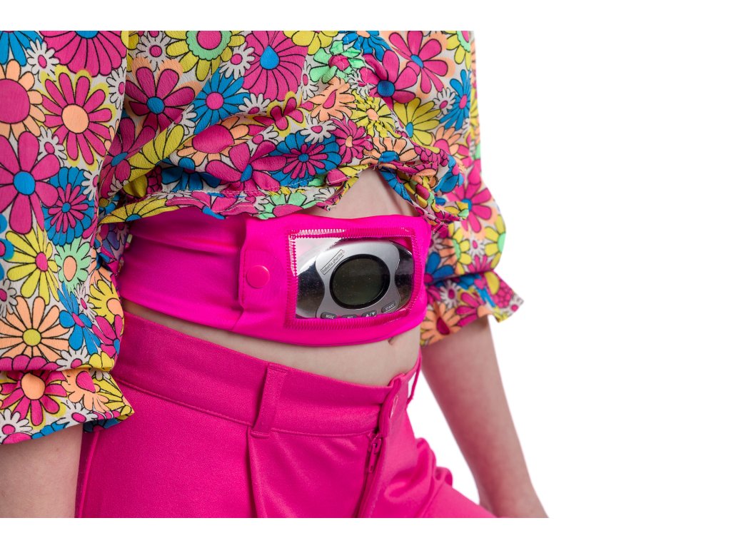Dia pás z pružnej látky, príjemnej na dotyk, farba pink (tmavoružová), s okienkom.